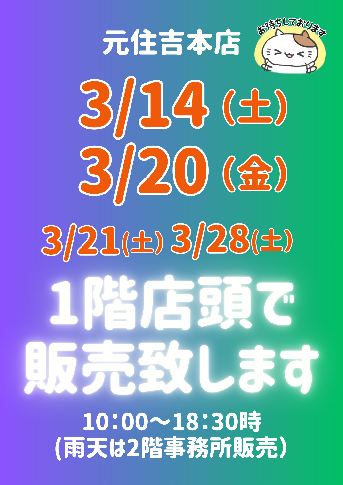 元住吉本店1階店頭販売を行います